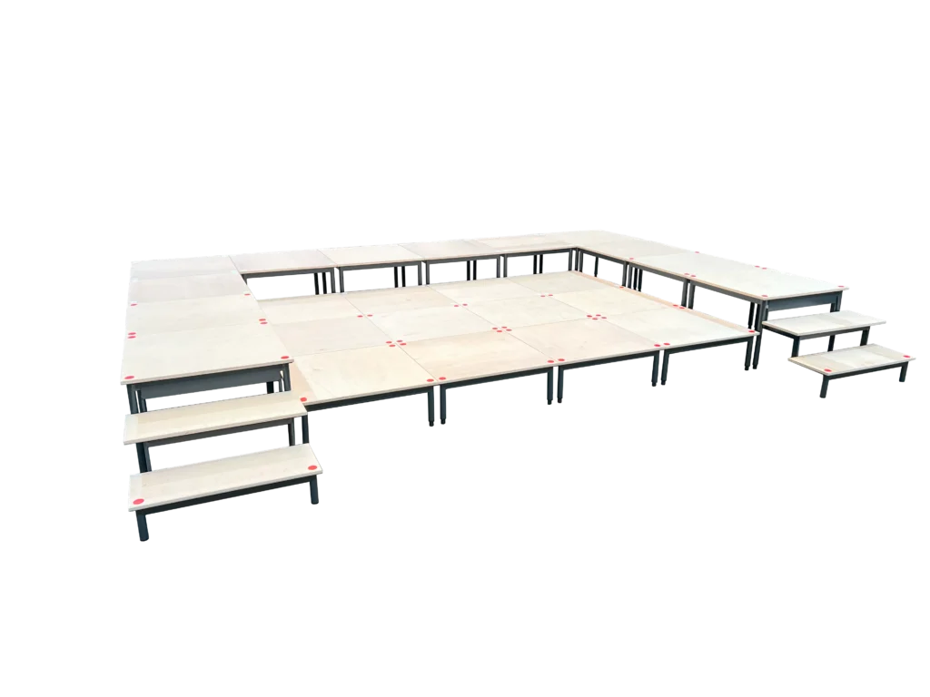 Naszą misją jest tworzenie scen, które są tak samo trwałe, jak łatwe w transporcie i przechowywaniu. Dlatego każdy nasz produkt powstaje z najwyższej jakości materiałów, spełniających europejskie normy bezpieczeństwa i funkcjonalności – takich jak trudnopalność klasy Bfl-s1, powierzchnia antypoślizgowa czy odporność na warunki atmosferyczne.